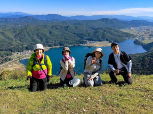 木崎湖を眼下に望むことができ、遠くに浅間山や志賀高原の山並みも一望できます。